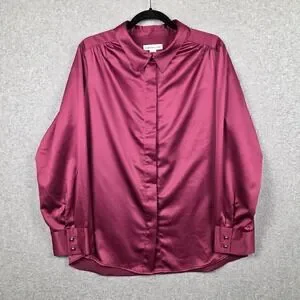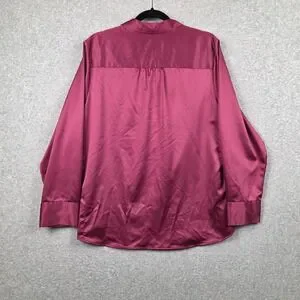 Coldwater Creek Shirt Womens 1X Pink Satin Button Front Long Sleeve Blouse Top