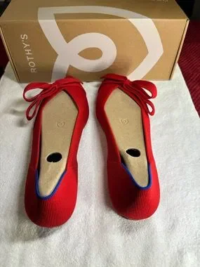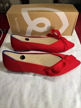 Rothy's Red Pointed Bow Knit Flats Cupid -WIDE-