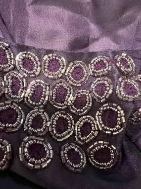 Charming purple dress with sparkling neckline embellishments. Soft sleeveless design for easy wear and comfort. Flared skirt creates a lovely silhouette for special occasions. Designed for girls who love a polished, festive look.