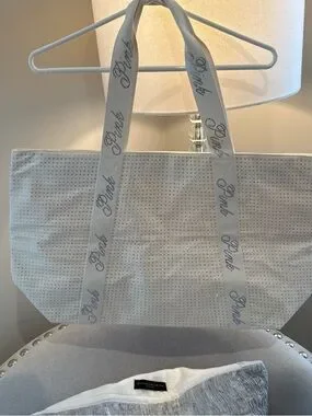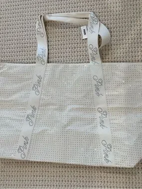 PINK Victoria's Secret Ivory Tote with Crystal Logo Straps