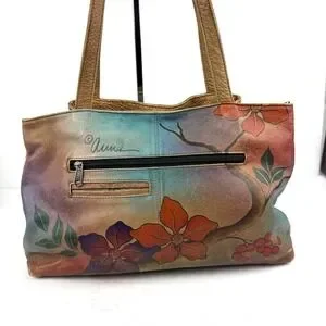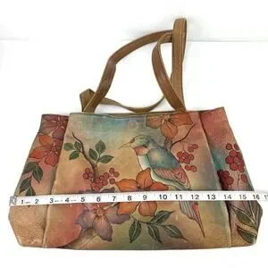 Anna By Anuschka Handbag Hand Painted Toucan Bird Floral Berries Boho