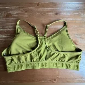 PINK Olive Green Sports Bra with Pink Logo Accent
