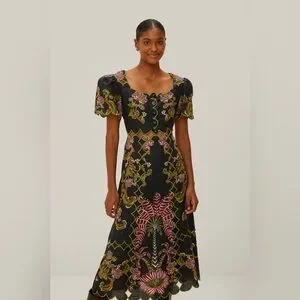 FARM RIO Black Ravenala Short Sleeve Maxi Dress, Size XX-Small, $320