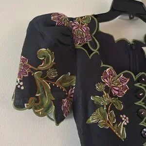 Elegant black dress featuring vibrant floral embroidery. Perfect for any occasion.