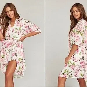 ANTHROPOLOGIE SHOW ME YOUR MUMU STRETCH BOHO WHITE PINK FLORAL SHORT ROBE OSFM