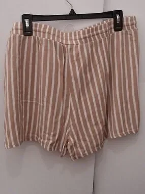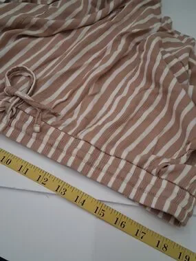 No Boundaries Tan and White Striped High Waist Drawstring Shorts Size XXL