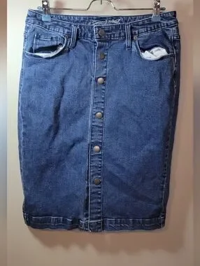 Universal Thread Dark Blue Button-Front Denim Midi Skirt Size 8/29