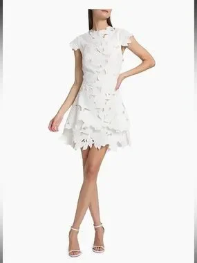 Taking inspiration from sculpture and architecture, Simkhai's impactful designs combine innovative construction with hand-detailing. Made from lace, the Holloway minidress is characterized by its delicate all-over embroidery.