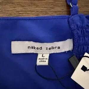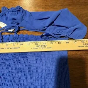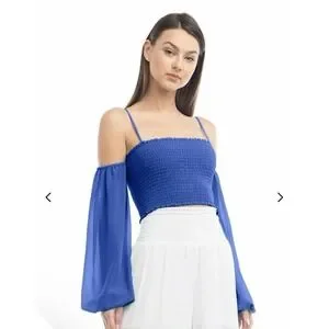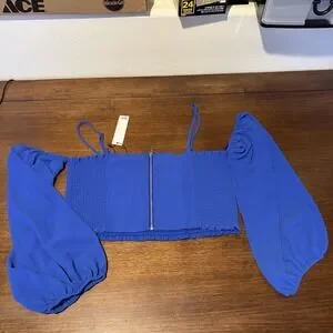 Naked Zebra NWT Woman's Off Shoulder Smocked Long Sleeve Crop Top Size L Blue