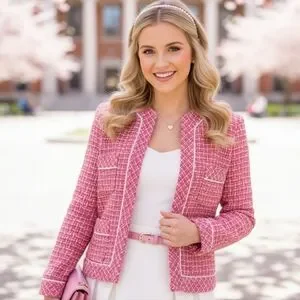 Anne Carson S Barbiecore Elle Woods Dainty Preppy Boucle Silk Tweed Blazer
