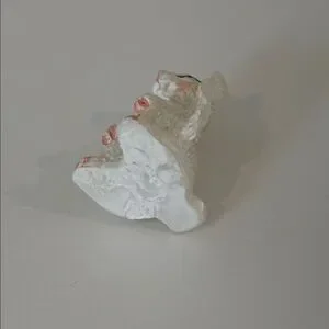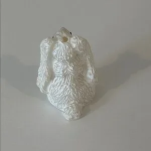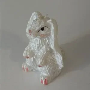 Charming white resin bunny figurine with pink accents. Perfect for decor.