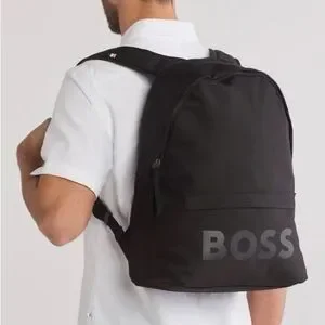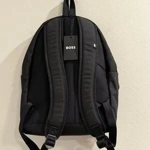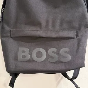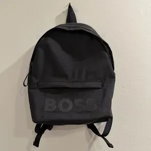 Sleek and modern BOSS Pixel Logo backpack in classic black, brand new with tags. Designed for everyday commuter and travel use, this backpack features a streamlined silhouette with durable construction, a spacious main compartment, and comfortable adjustable straps—perfect for work, school, or weekend travel. Finished with the bold BOSS pixel logo for a polished designer look. Tag code ends in “WO” (women’s line), but the backpack features a unisex design suitable for anyone. Retails for $173.