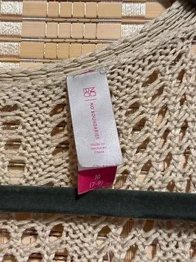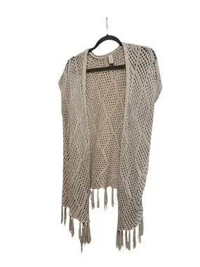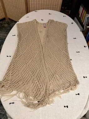 Boho Crochet Cardigan Open-Knit Fringe Poncho Vest Cottagecore Tan Size M