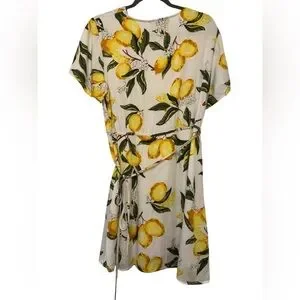 The Lulus A La Tart White and Yellow Lemon Print Wrap Dress is all you need to serve up a sweet and sassy look! Bold and refreshing lemon print embellishes this flirty wrap dress, composed of lightweight, woven fabric. Short sleeves frame the surplice bodice, while ties cinch the waist above the flaring mini skirt.
