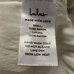 Hand Wash Cold. Do Not Bleach. Line Dry. Iron Low Heat.
