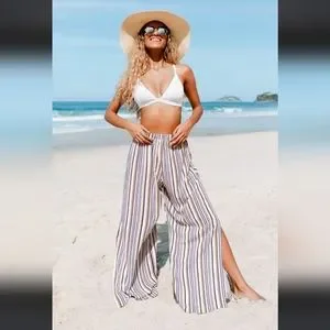 CUPSHE Brittney Striped Elastic Waist Beach Cover-Up Pants Swim Resort Size L