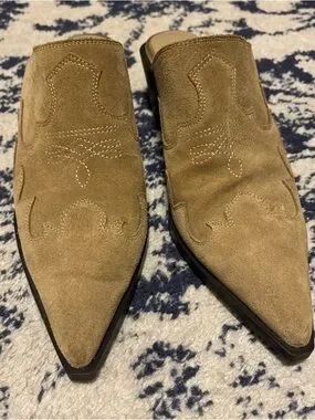 Zara Suede Pointed Toe Mule Clogs in Tan