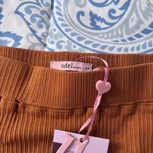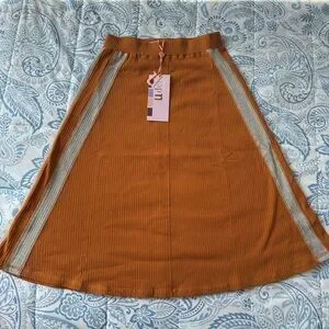 Udel New York Girls Camel Ribbed Skirt with Side Stripes Size XS NWT