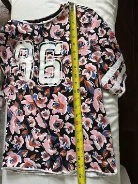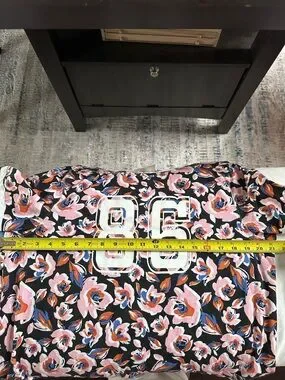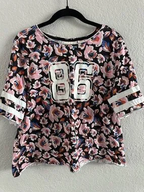 Soft and comfortable with a relaxed fit—perfect for casual everyday wear. Fun mix of feminine floral and athletic-inspired design.
