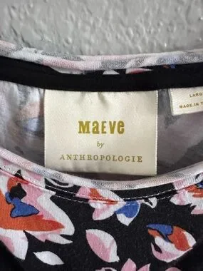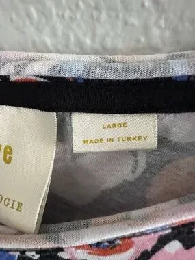 Maeve Anthropologie Floral Graphic Tee 86 Short Sleeve Top Black Pink Size Large