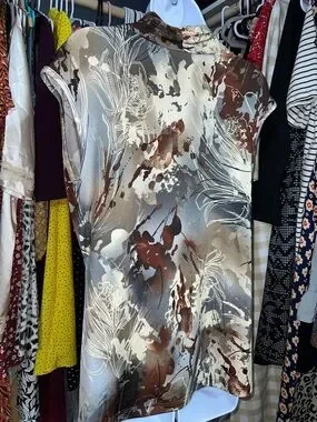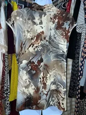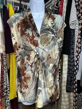 dressbarn Neutral Floral Print Blouse in Beige, Brown, Gray size M
