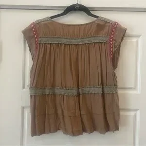 Anthropologie Blank London Sedona Embroidered Embellished Top Size Medium. In like new condition with no signs of flaws. Super cute floral embroidery details! Has cute ruffles at the bottom of the top. Perfect top for the spring and summer months! Very soft and comfortable!