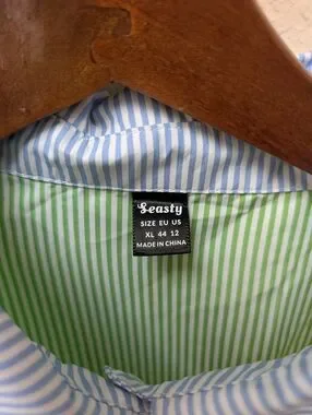 Hi there!! Because it's shein the sizes do run a little smaller. I would have to assume it fits like a medium or large but when I get home I can take some measurements!!