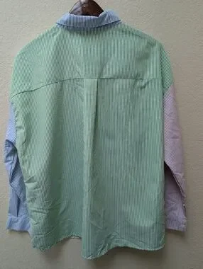 Pastel Multi Colored Pathwork Collared Button Down Blouse. Size 12