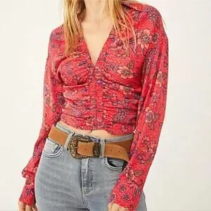 Free People Pink Floral I Got You Printed Long Sleeve Top S