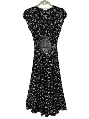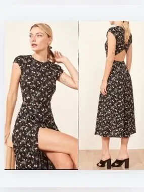 Reformation Gavin Dress Sasha Floral High Slit Cut Out Back Midi Black 4