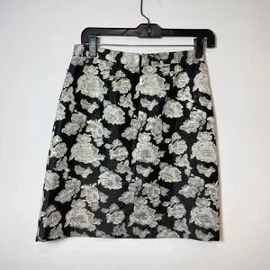 Adrienne Vittadini Floral Straight & Pencil A-line Skirt Womens Size 2 Black