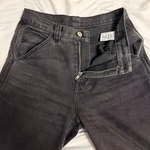 Classic and versatile J. Galt Shanghai black straight-leg jeans in a washed charcoal black tone. Made from 100% cotton for that sturdy, vintage denim feel. These jeans offer a flattering high rise, straight leg, and everyday wearability.