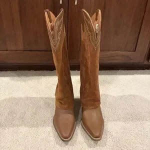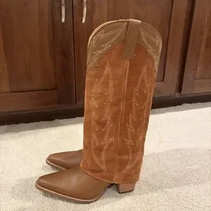 Where sophistication meets the West. These elegantly cuffed boots feature subtle Western detailing, creating a look that's both refined and effortlessly cool