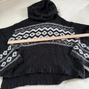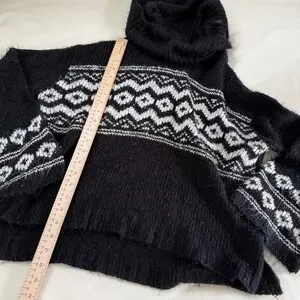 Boho sweater pink republic medium black knit fair isle sweater cozy