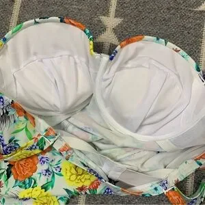 A vacation-ready midkini accentuates your bust while a peplum hem offers a figure-flattering silhouette. TOP ONLY. In excellent condition.