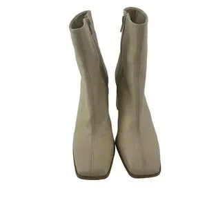 Free People Sienna Ankle Boot Square Toe Butter Cream Leather US 8.5 Block Heel