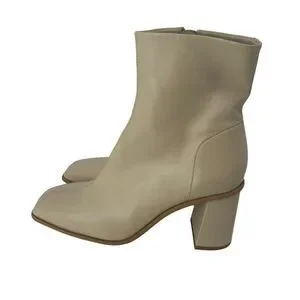 Free People Sienna Ankle Boot Square Toe Butter Cream Leather Chunky Block Heel Modern Mod Minimalist