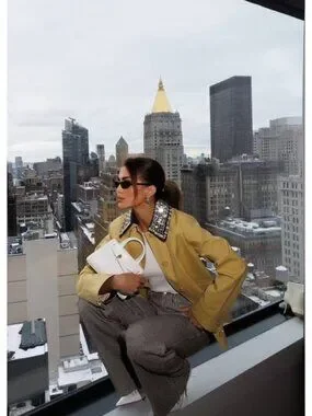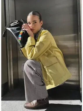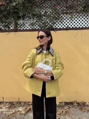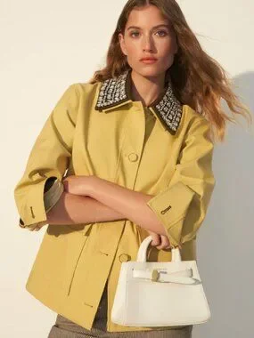 Expertly tailored from 100% cotton, the yellow lightweight Arlen is the perfect transitional coat, with an added touch of glamour. It features a relaxed, boxy fit with oversized flap pockets and contrast-color cuffs. The highlight? A detachable collar covered in dazzling rhinestones—perfect for elevating the everyday.