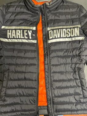 Harley-Davidson Black Puffer Jacket with White Logo Stripe XS