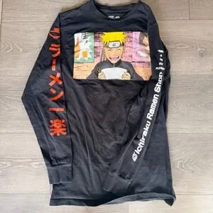 Naruto Shippuden Ichiraku Ramen Shop Black Long Sleeve Graphic Tee Men Size S