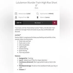 LULULEMON Wunder Train High Rise Short 8 inch Black size 2 Bike Shorts
