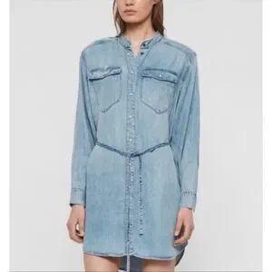 All Saints Loe Snap Front Denim Shirt Dress Size XS