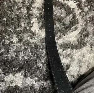 Black belt with chrome buckle and subtle floral embossing. The quality isn’t high-end its kinda cheap.