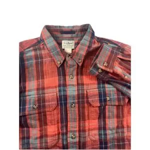 LL Bean Men's Large 1912 Field Flannel Shirt Slightly Fitted Untucked Fit Plaid