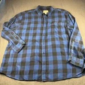 St. Johns Bay Mens 3XL Blue Black Buffalo Plaid Flannel Button Down Shirt Cotton
