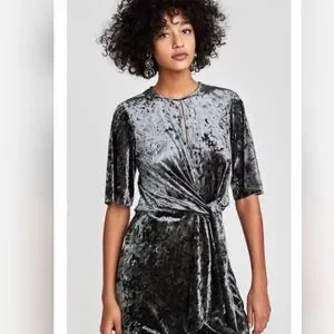 Zara Women’s Green Gray Velvet Crushed Dress Key Hole Size Small. Excellent Used Condition