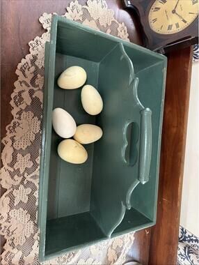 Antique wood cutlery caddy Green Paint utensil carrier Centerpiece Country Farm