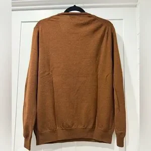 Rust colored J. Crew V-neck sweater. 100% merino wool.