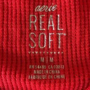 AERIE Real Soft Apres Ski Long Sleeve Thermal Tee To Be Continued Red Medium