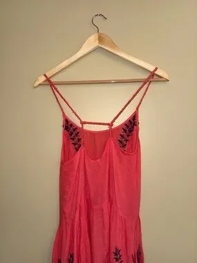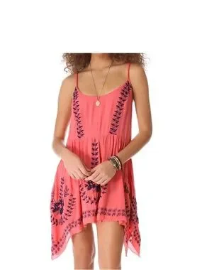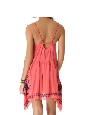 Free People Meadows Of Medallion Slip Swing Dress S coral Embroidery Boho Beach